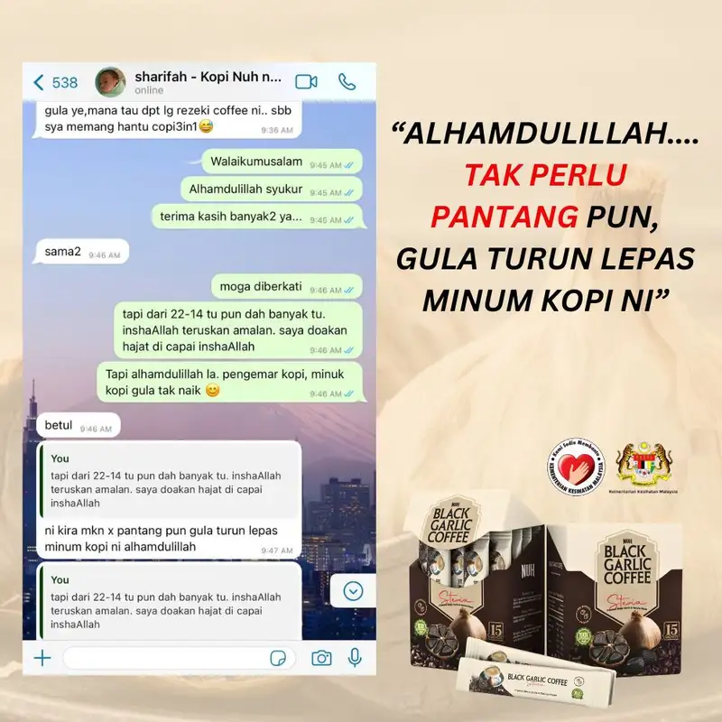 Dibawah adalah testimoni Kopi Nuh Black Garlic