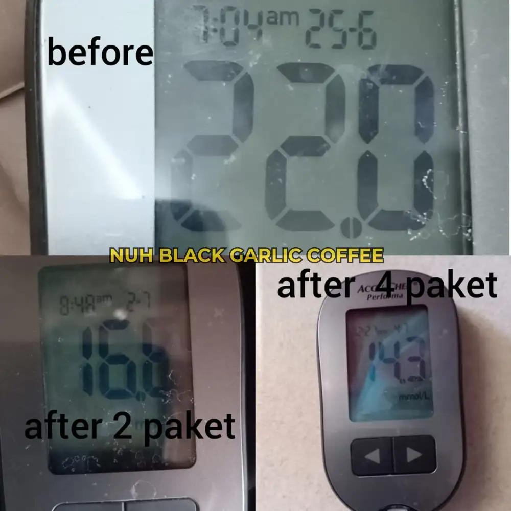 Nuh Black Garlic Coffe menggunakan Stevia iaitu peganti gula dan sangat mesra pada penyakit 3 serangkai. Tidak akan naik malah akan turunkan lagi bacaan gula.